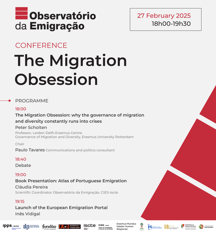 2025/02/27 18h00-19h30Auditorium A302/Building 4/IscteIPPS Youtube IPPS-Iscte presents the conference The Migration Obsession: Why the governance of migration and diversity constantly runs into crises, organised as part of the series of talks on Migration and Integration Challenges. The session is organised in partnership with CIES-Iscte. With the participation of Peter Scholten, professor at Erasmus University Rotterdam […]