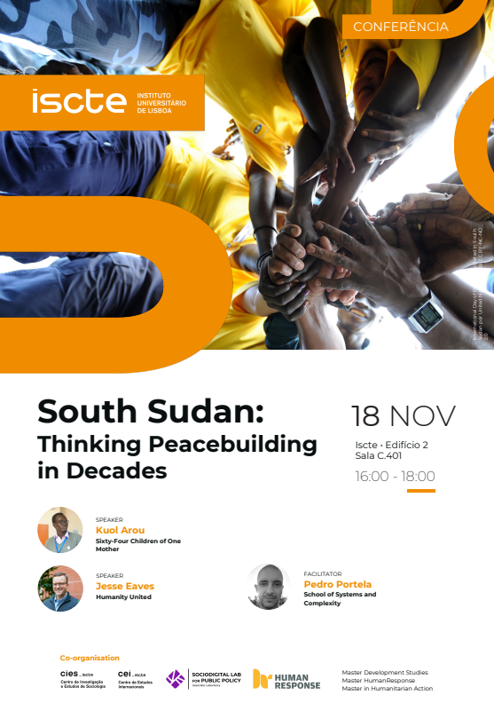 Erasmus Mundus Human Response Student and member of 641M – Sixty-Four Children of One Mother organization Kuol Arou Kuol and Jesse Eaves, Director of Humanity United were the guest speakers for the Conference – South Sudan – Thinking Peacebuilding. Pedro Portela from School of Systems and Complexity was the facilitator of this event.
